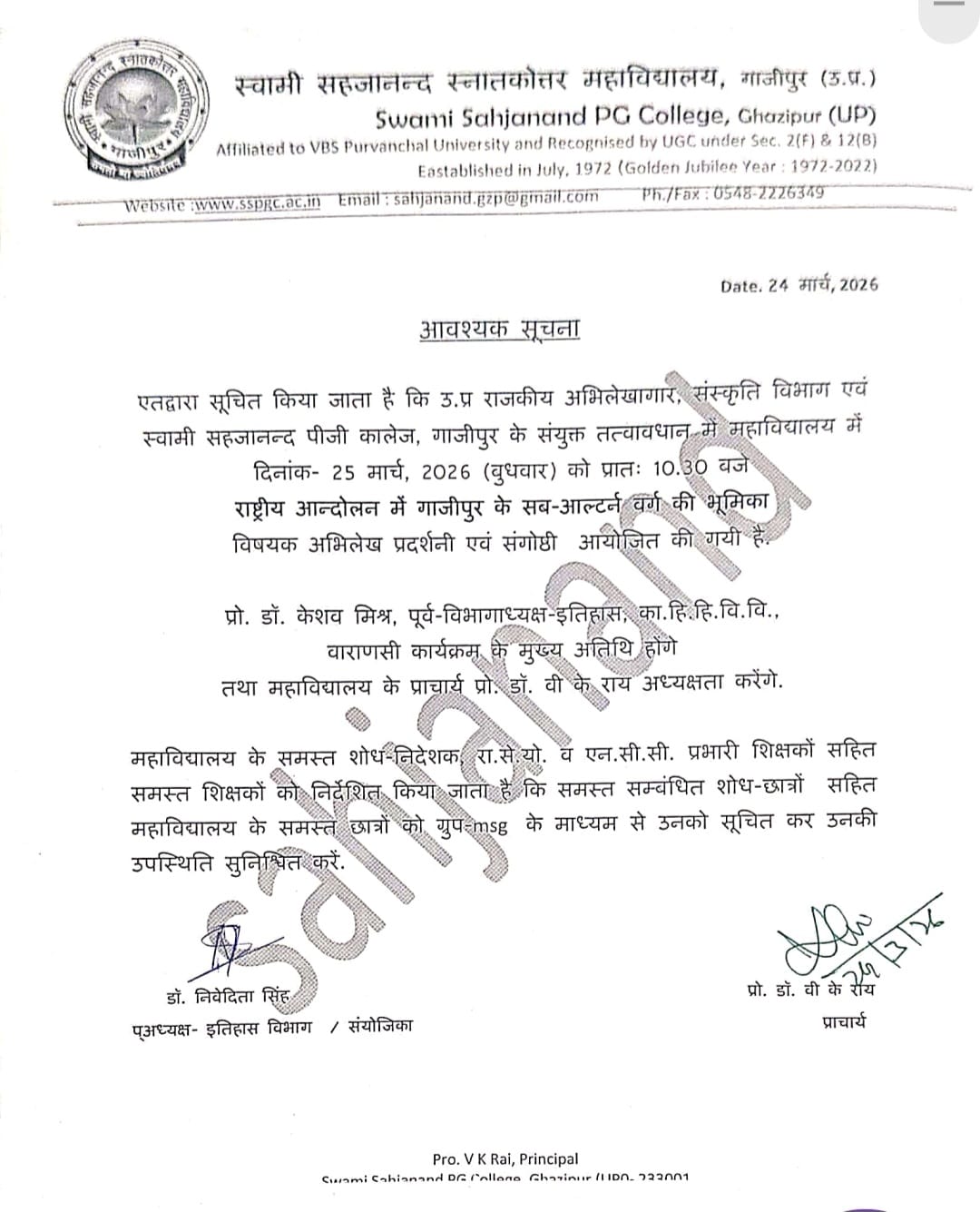 स्वामी सहजानन्द पीजी कालेज, गाजीपुर में शैक्षिक सत्र- 2024-25 के लिए विभिन्न पाठ